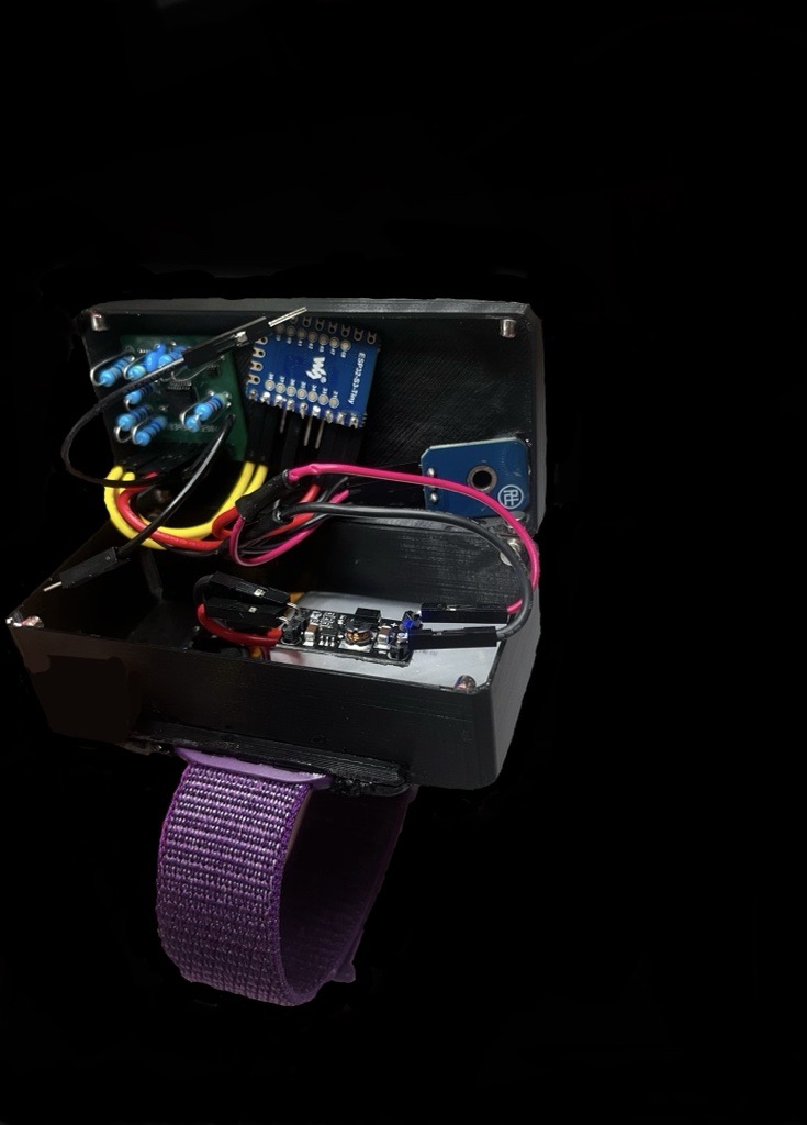 - UV Monitoring & Alerts – The bracelet uses a UV sensor and RGB LED to indicate real-time UV risk levels.