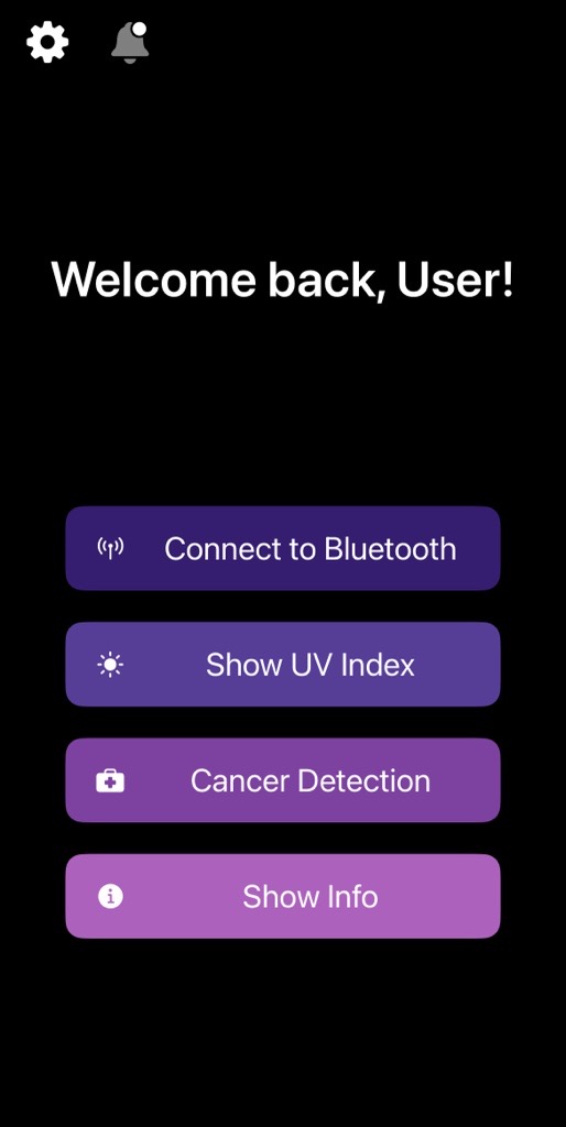 The AURA mobile app connects seamlessly with the bracelet via Bluetooth, displaying real-time UV index and impedance scan results. It provides clear color-coded alerts, stores past measurements, and can integrate AI-based analysis to support early skin health insights. Designed for simplicity and privacy, the app helps users stay protected and informed anywhere.